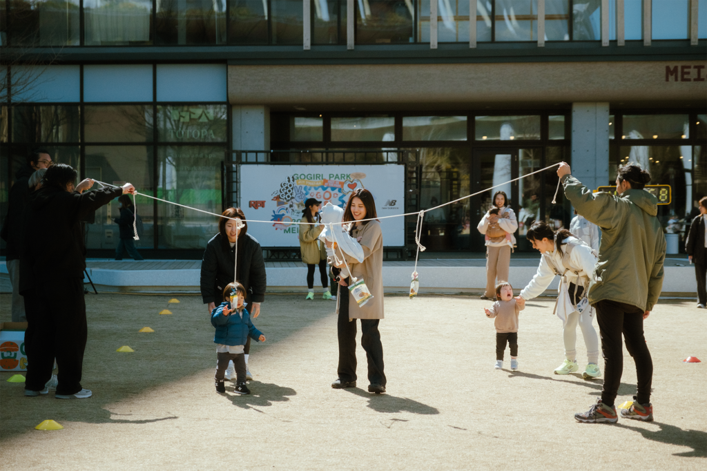 大人たちがプロギングに励む間、キッズスペースでは「ミニ障害物かけっこ」がスタート。小さな子どもたちが一生懸命にパン食い競争に挑んだり、トンネルの遊具をくぐり抜けたりと、一生懸命にゴールを目指す姿に、会場は温かい歓声に包まれました。