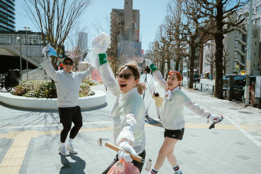大人向けの最初のプログラムは「チーム対抗プロギング」。ランダムに組まれた5〜6名のチームで明治公園周辺を走りながら、制限時間内にどれだけゴミを拾えるかを競います。「プロギングは初めて」という参加者も多くいましたが、走りながらゴミを見つける宝探しのような感覚に、誰もが夢中に!各チーム、予想をはるかに超える量のゴミを回収し、街を綺麗にしながら心地よい汗を流しました。