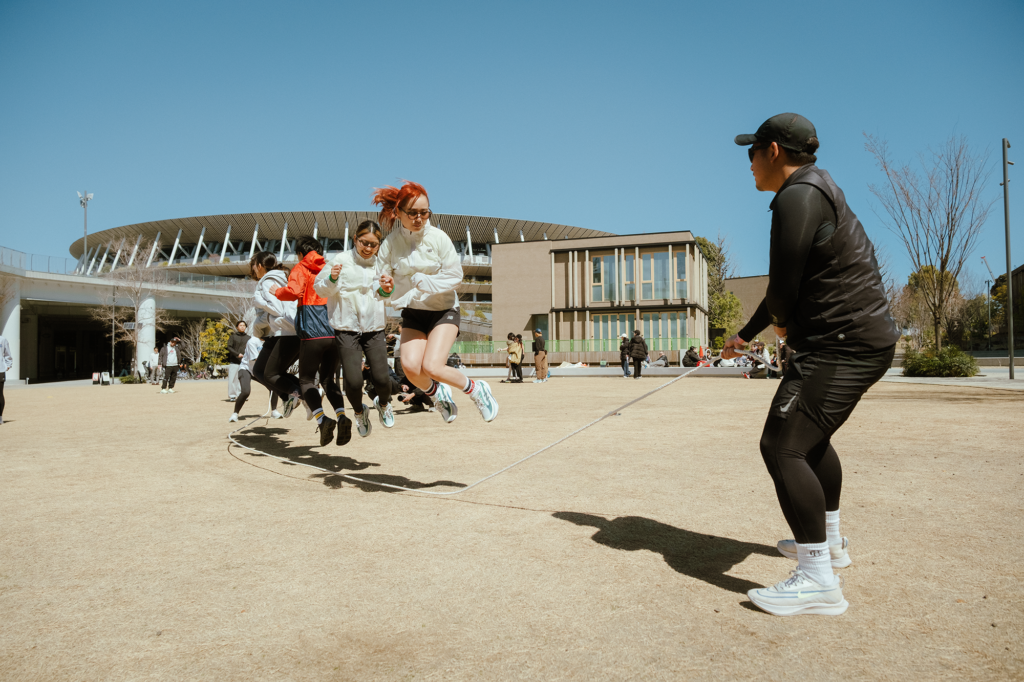 制限時間内に何回跳べるかを競うこの競技。初対面のメンバー同士も多い中、縄を回すタイミングに合わせて「いーち、にーい!」と全員で声を掛け合い、息を合わせてジャンプ。引っかかっても「ドンマイ!」「もう一回いける!」と励まし合う姿があちこちで見られ、跳べた回数以上に、チームの結束力と一体感が一気に高まる時間となりました。