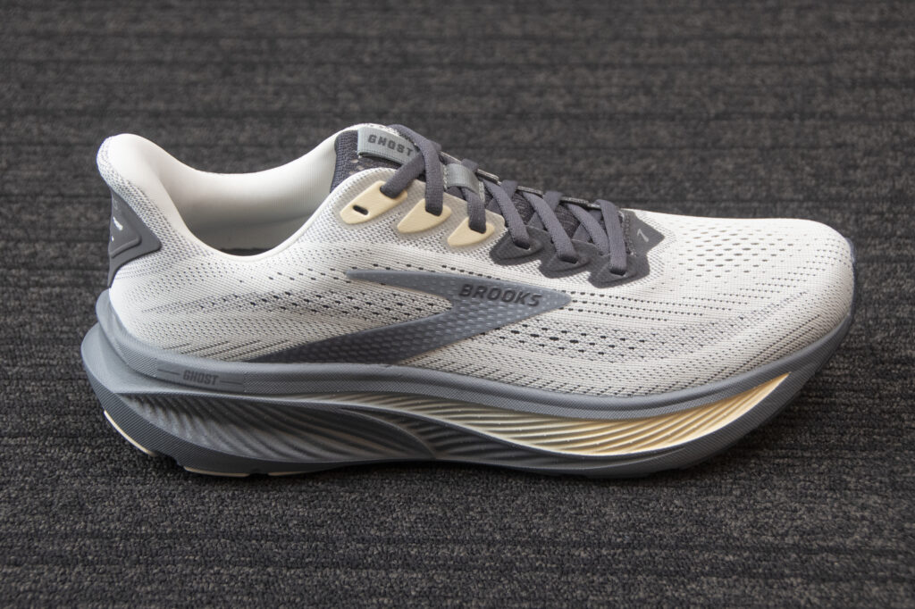 「クッションを厚めにしたことで、バウンス感が増しました。しかし《ゴースト17》は、いわゆるスピードシューズではないので、無理に跳ねないよう、ドロップ(前足部とかかと部の高低差)を10㎜に抑えて、安定感も担保しています」(栗岩さん)