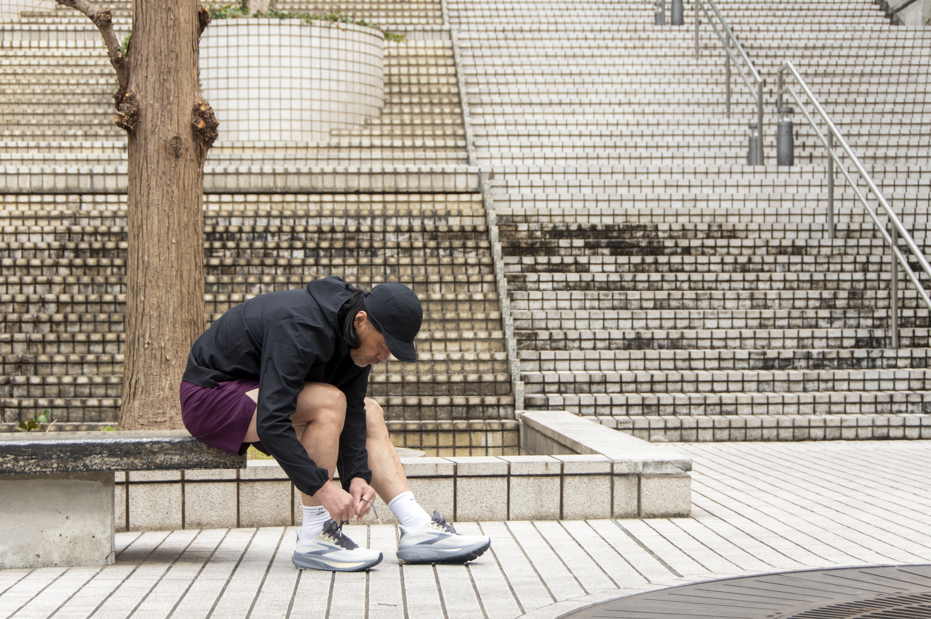 試しに、(調子に乗って)下りでさらに加速してみる。安定感は変わらないが、ミッドソールの反発は加速の分だけ増してくる(つまり、硬く感じる)。前編の取材で〈BROOKS〉の担当者が語っていた、“〈ゴースト〉は、スピードシューズではない”の言葉が思い起こされる。なるほど、1キロを4分以下で走りたいなら、その用途に合った〈BROOKS〉のレーシングモデルを履くべきなのね。