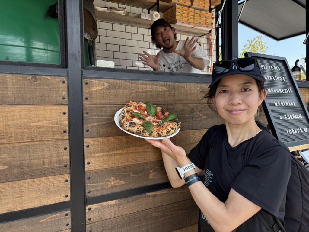 小腹が空いたら、キッチンカーへ。釜で焼かれたマルゲリータを仲間と分け合う頃には、気分は最高潮!