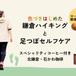 ハイキングのゴールは、北鎌倉のスペシャリティコーヒー「石かわ珈琲」。通常はテイクアウトのみの特別な店内を利用し、足つぼセラピスト・えりさんによるセルフケア講座を実践形式で学びます。ハイキングで使った足を癒す、自宅でも実践できるテクニックが満載です。