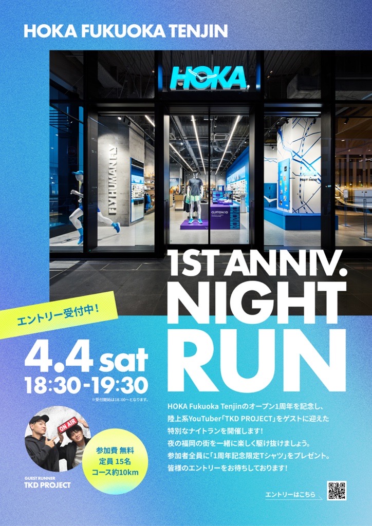 4月4日(土)に、TKDPROJECTの二人と天神の街を走るナイトランイベントを開催!