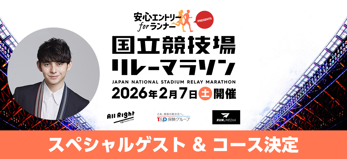 RUN.MEDIA主催「“安心エントリー for ランナー”PRESENTS 国立競技場リレーマラソン」2026年2月7日(土)開催決定! 2025.10.20 イベント w7634c57 RUN.MEDIA